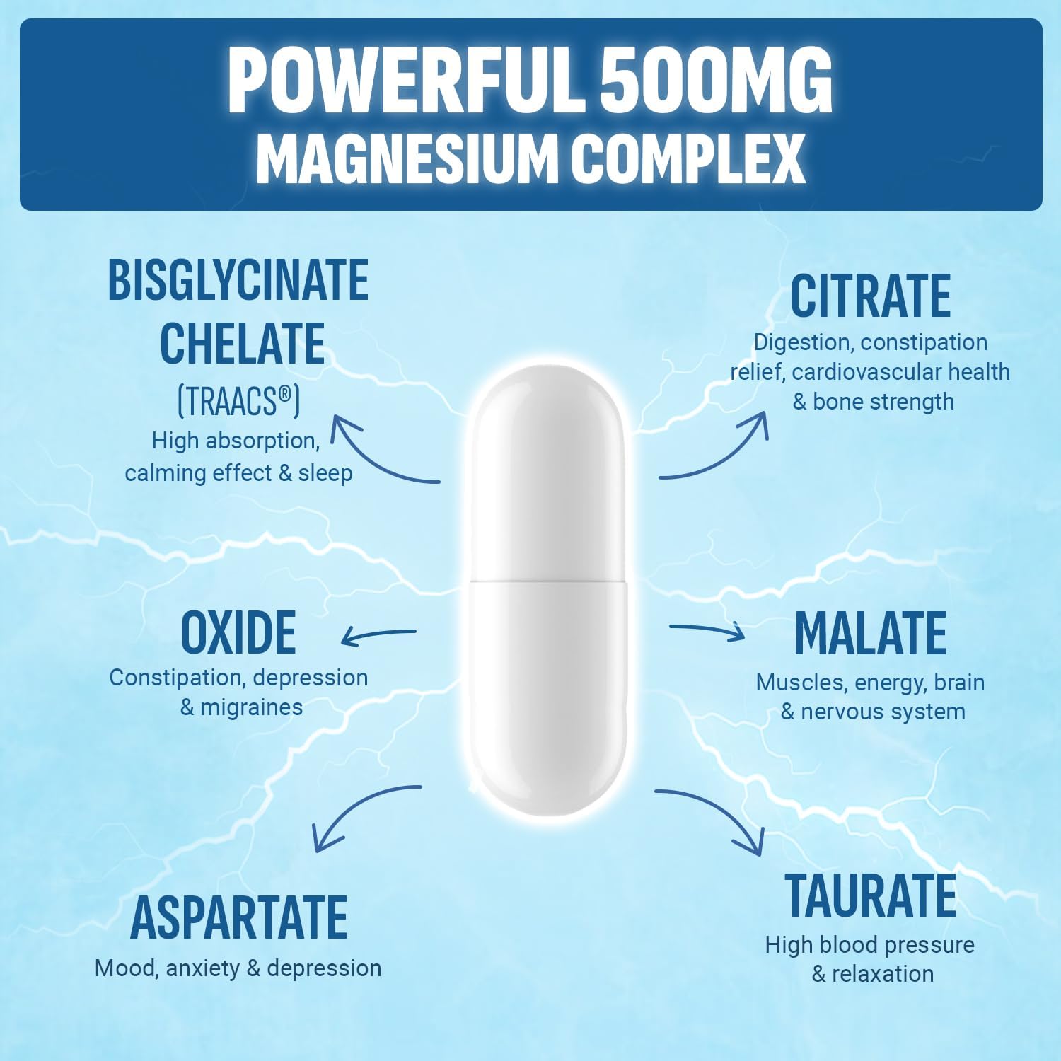 Supports Overall Wellness: These all-in-one magnesium capsules boost energy, enhance muscle recovery, alleviate discomfort, and relieve constipation with magnesium citrate, malate, and taurate. These capsules support strong bones for an active lifestyle.